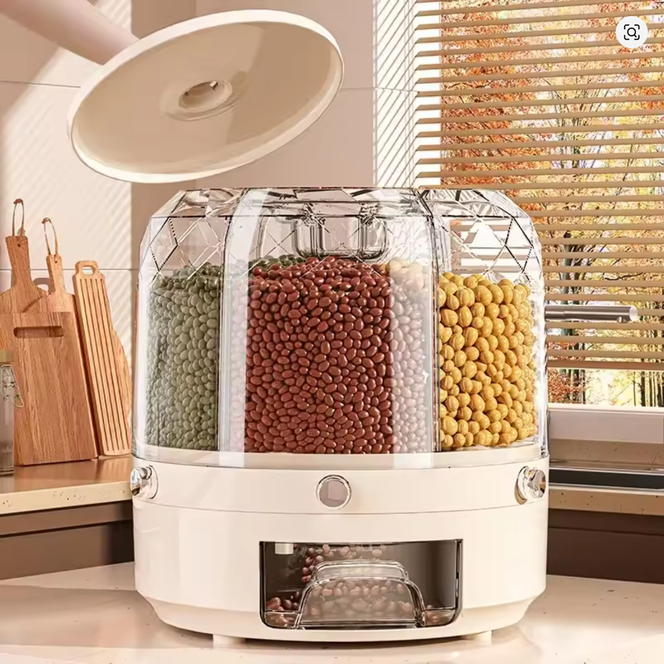 360° Rotating Rice & Grain Dispenser — Airtight Multi-Compartment Food Storage Box