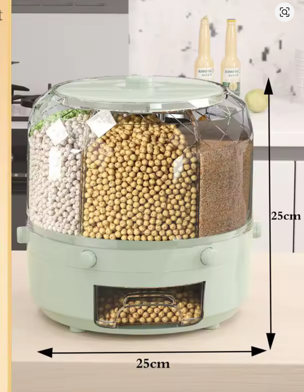 360° Rotating Rice & Grain Dispenser — Airtight Multi-Compartment Food Storage Box